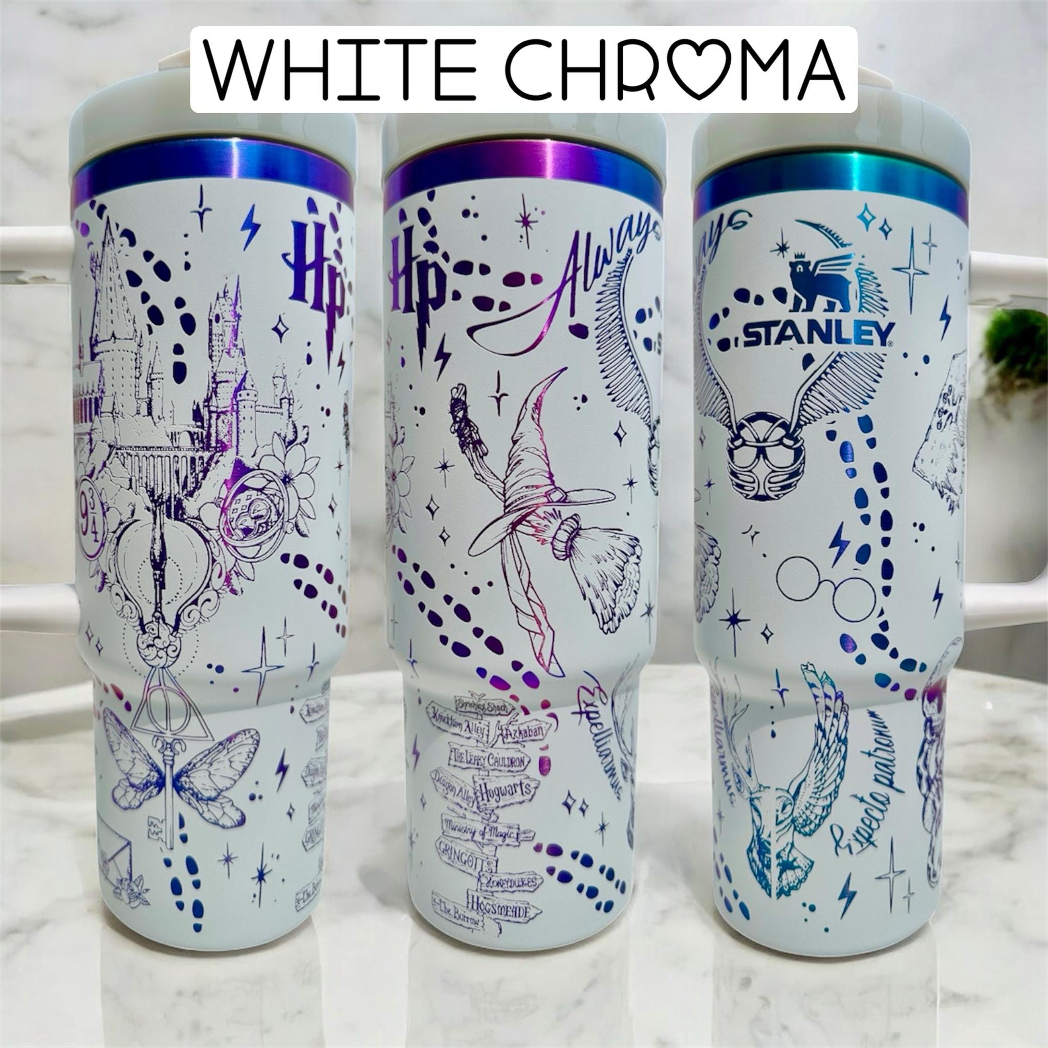 A beautiful laser engraved cup showcasing your favorite wizarding world. Making the perfect gift for any magic lover.