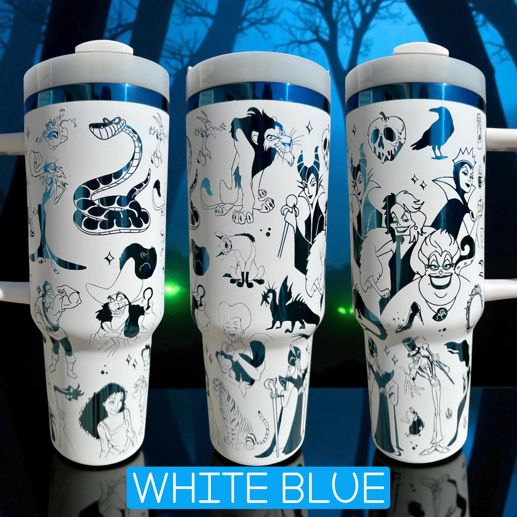 A beautiful laser engraved cup showcasing your favorite villains. Making the perfect gift for any evil cartoon lover.