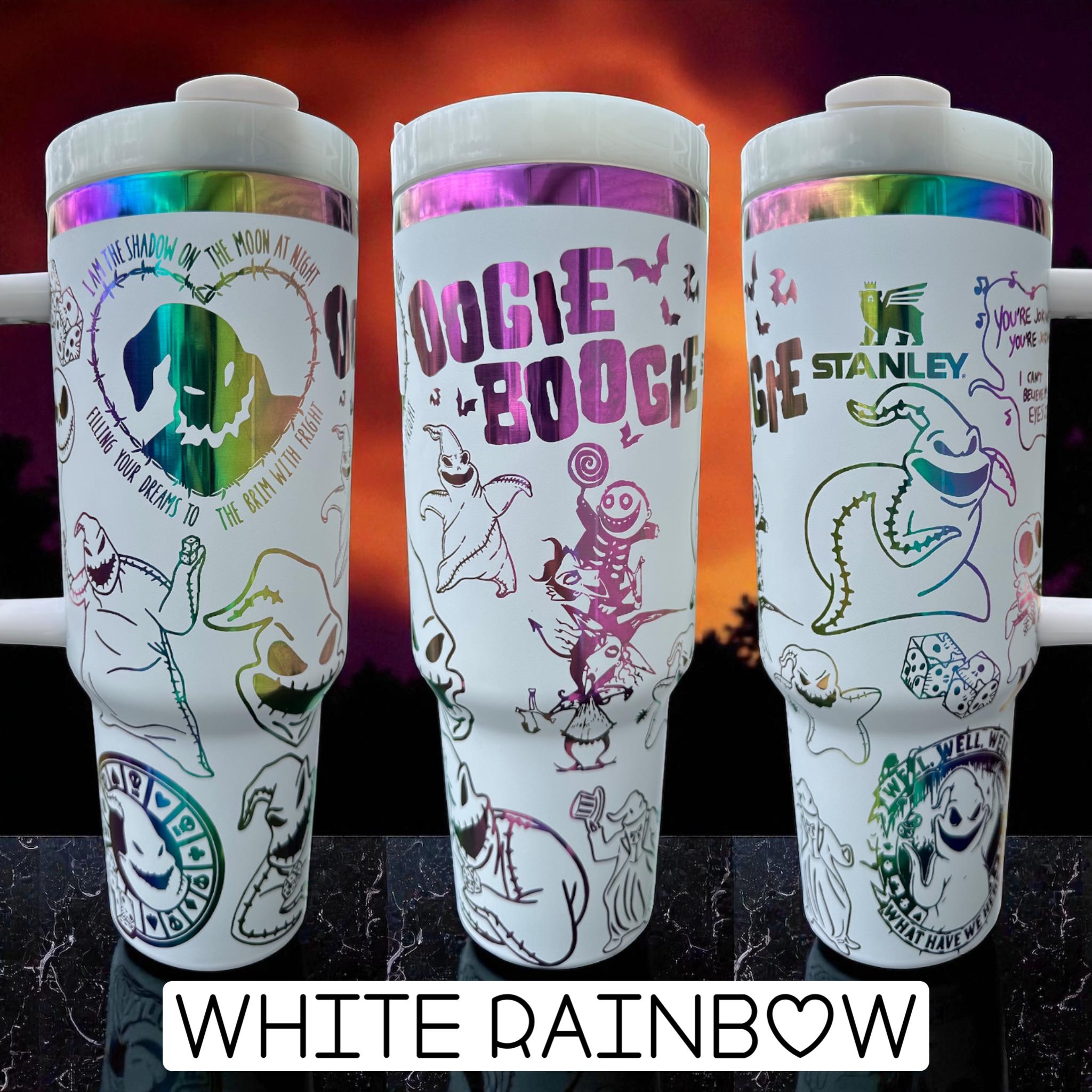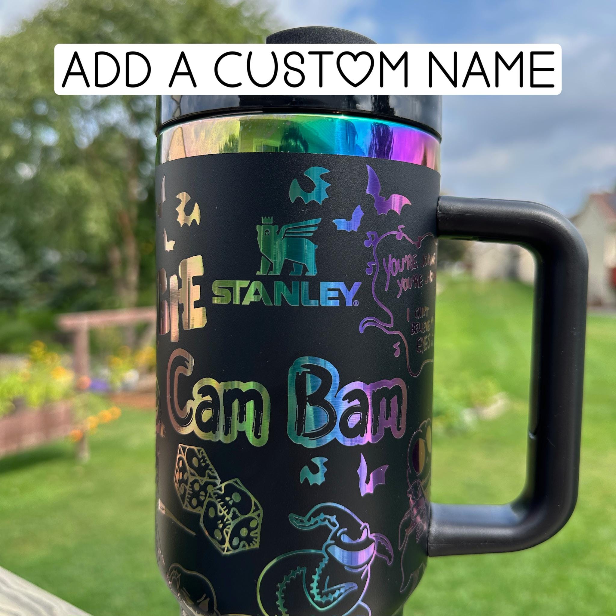 A beautiful laser engraved cup showcasing your favorite boogie man. Making the perfect gift for any cartoon lover.