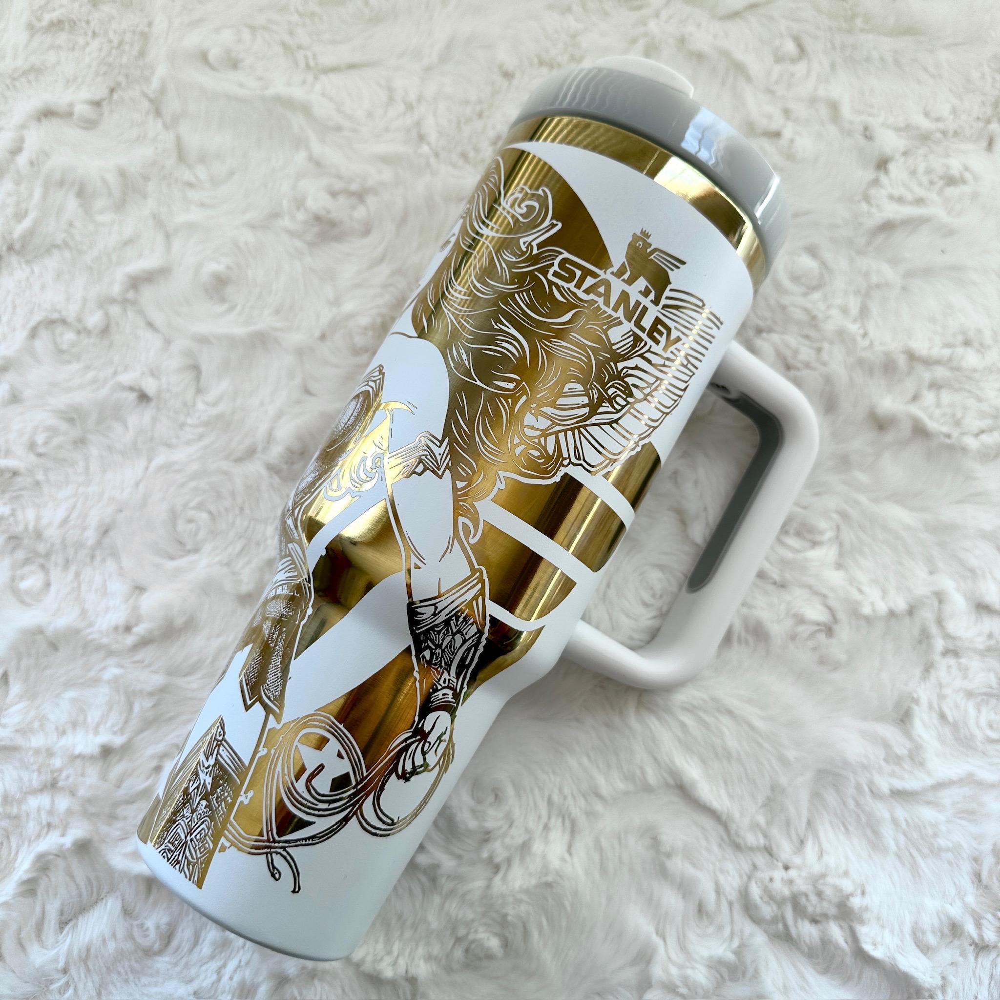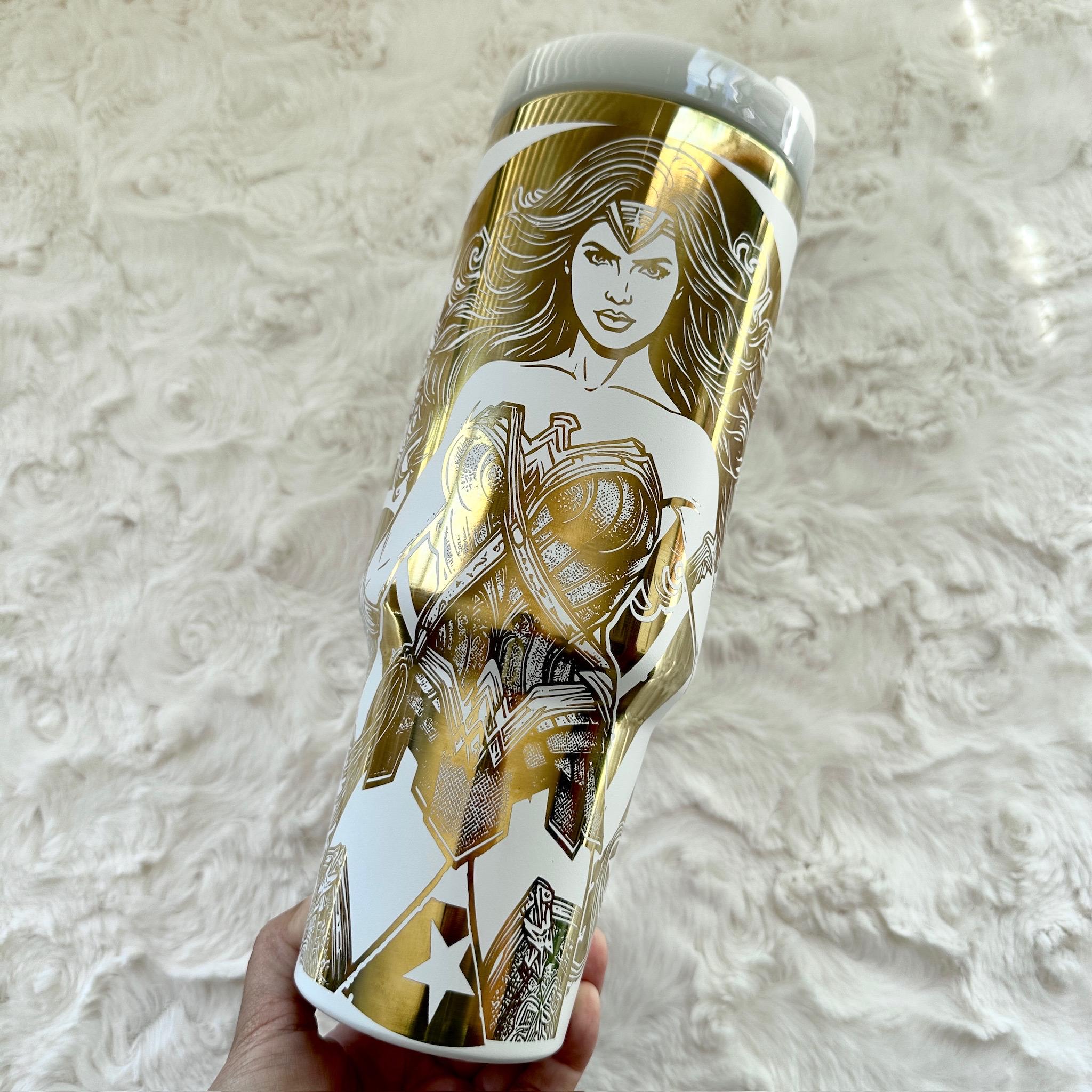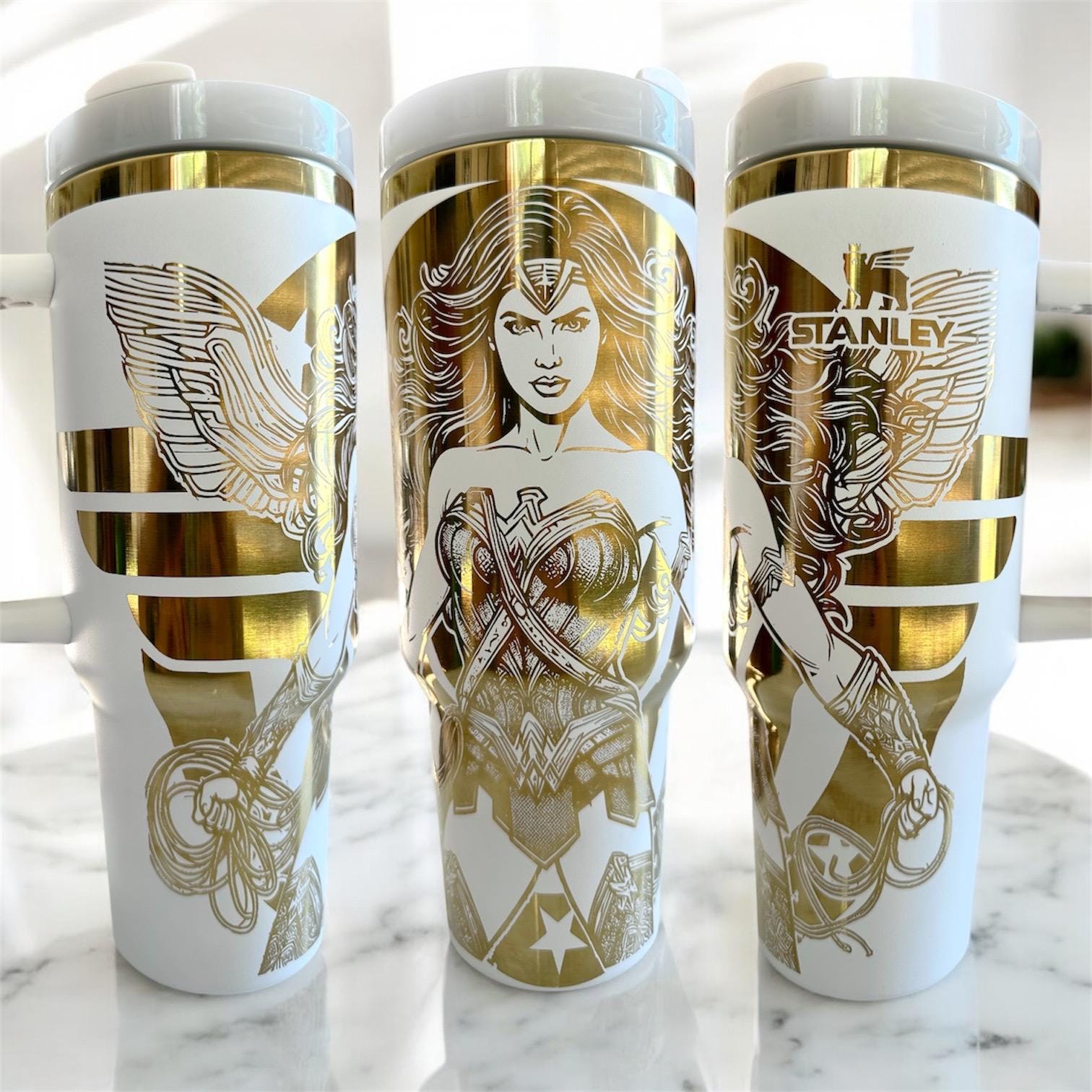 A beautiful laser engraved cup showcasing your favorite female superhero.