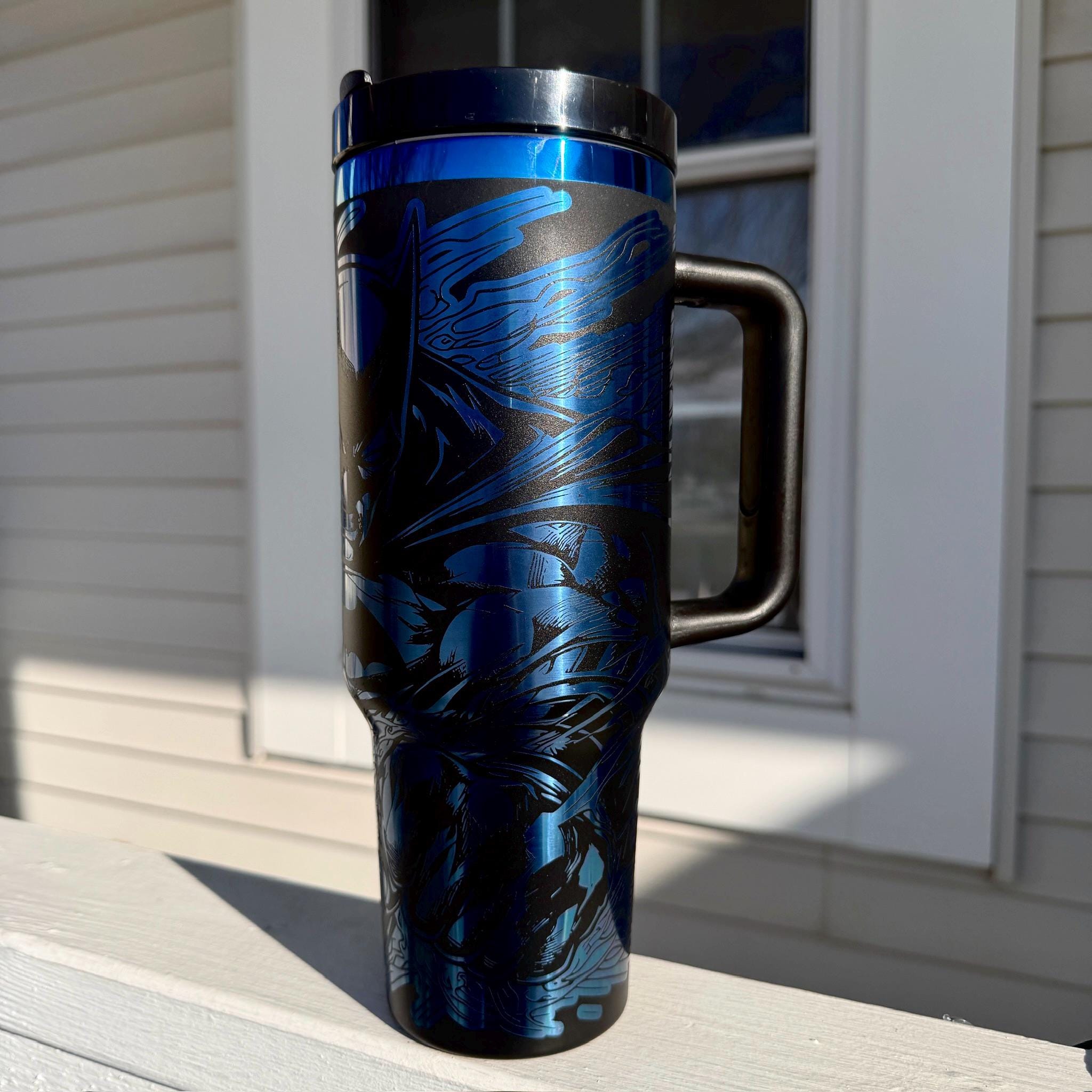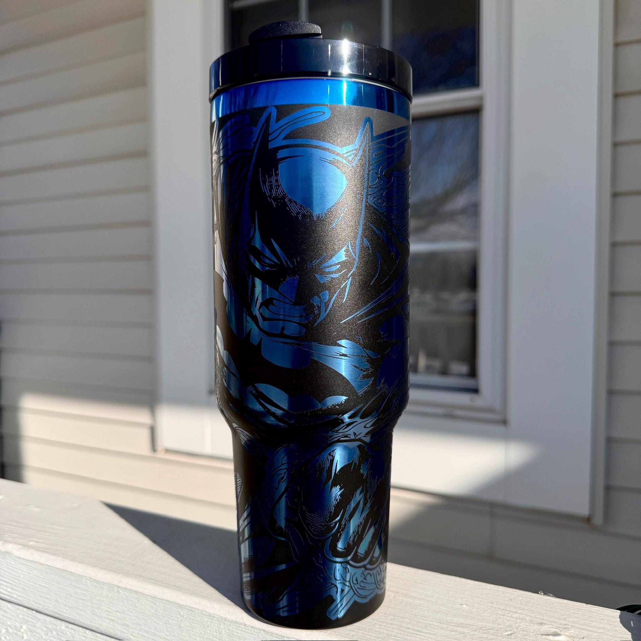 A beautiful laser engraved cup showcasing your favorite superhero.